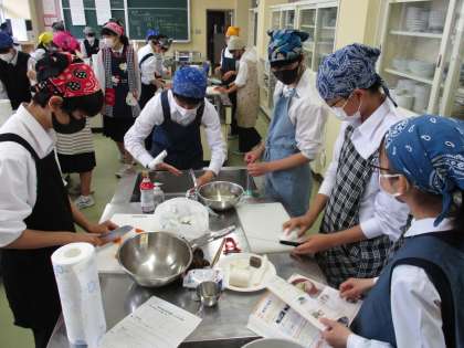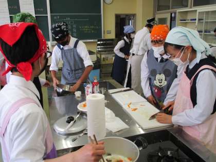 2年 今日の授業風景5/25(火) 公開日 2021/05/25 更新日 2021/05/25 第2学年 2年生は本日、調理実習を行いました。班員と協力して、美味しい料理を作ることができました。 写真上…2A 写真中…2B 写真下…けんちん汁