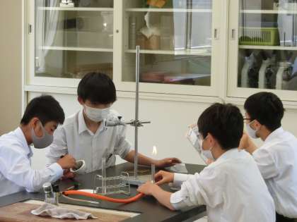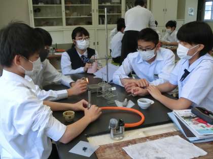 酸化銅に炭素を加えて加熱し、酸素を取り除く実験を行いました。