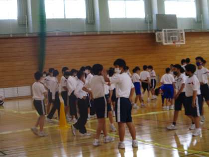 学年レクリエーション 公開日 2021/05/31 更新日 2021/05/31 第1学年 5/31(月)学年生徒会が企画・運営し、「第1回学年レクリエーション」を行いました。「学年全員が仲良くなろう」を目標に、富山県や水橋中、先生についての「クイズT」やクラス混合チームでの「ドッヂボール」を行いました。生徒は笑顔で取り組んでいて、さらに学年の絆の深まりが感じられました。