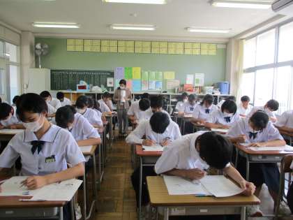 3年生は本日行われた国語、美術、理科のテストで1学期期末考査終了です。テストを終えた生徒から「先生、ケアレスミスをなくすにはどうしたらいいですか。」や「理科はかなり自信ある!」と声が聞けました。3年生は今後も多くのテストが予定されていますが、解き直しをしっかりと行い、次のテストに向けて役立てましょう。
