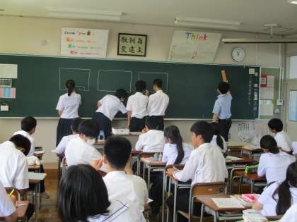本日の授業 3A社会 3B国語 公開日 2021/07/01 更新日 2021/07/01 第3学年 3年生の3時間目の授業の様子です。 3Aは社会でテスト返却と1学期の振り返りを行いました。写真上はコンビニの商品の配置を黒板に書いている様子です。次の授業で何を学ぶか楽しみですね。 3Bは国語で教科書の「俳句の可能性」を学習しています。写真下は先生が俳句の切れ字について説明している様子です。テストを終えたばかりですが、集中して学んでいます。