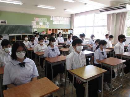 1学年 登校初日 公開日 2021/08/27 更新日 2021/08/27 第1学年 朝から元気よくあいさつを交わし、隅々まで綺麗に清掃をして2学期がスタートしました。 始業式は、教室で放送を聞く形式でしたが、姿勢を正し、真剣に聞く姿から2学期の意気込みを感じました。 久々の再会に笑顔いっぱい、どんな2学期になるか楽しみですね。