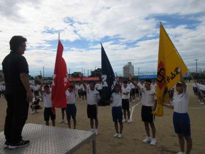 体育大会 開会式 公開日 2021/09/29 更新日 2021/09/29 最近の水中の様子 晴天に恵まれたグラウンドでは、さわやかな選手達の笑顔がこぼれ、選手宣誓では各団の団長達の意気込みが感じられました。凜とした雰囲気のもと伝統のエール交換が行われました。夏休み前から制作した団のシンボルであるマスコットのお披露目もありました。