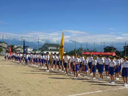 閉会式の様子です。最後まできれいに整列しています。一生懸命に取り組む姿が随所に見受けられ、充実感のあるすがすがしい1日となりました。