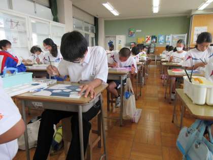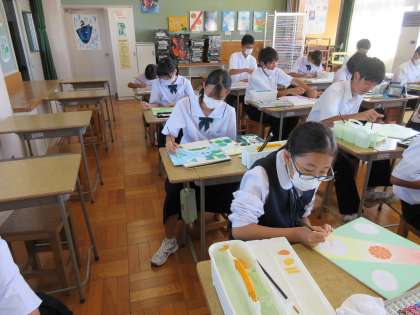 野菜や果物をモチーフにした作品を描いています。彩色も進み、完成間近です。