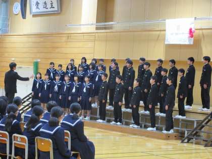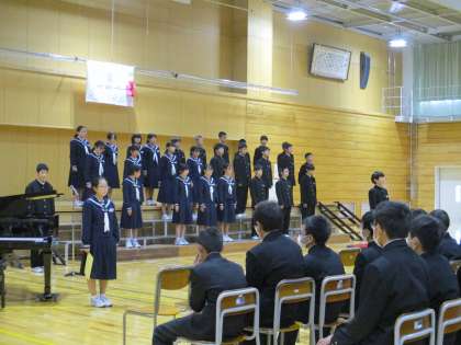 合唱コンクールの様子です。1、2、3年生の順番で合唱を行いました。どのクラスも練習の成果を発揮していました。