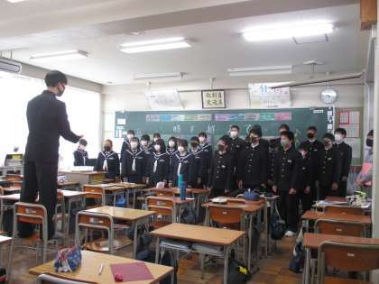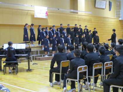 本日、無事に学習発表会を終えることができました。結果に悔しがる生徒もいましたが、自分たちの努力に納得した形で終わりを迎えることができたようです。来年は今年を超える合唱を期待しています。写真はA組の様子です。