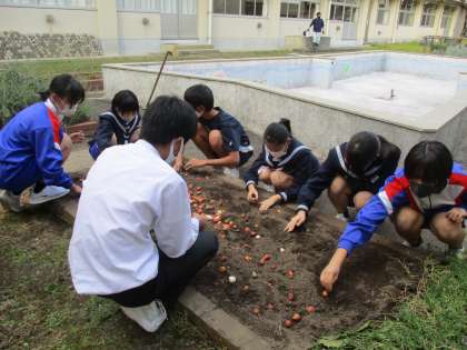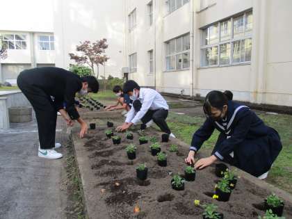 美化委員会の苗植え活動 公開日 2021/11/04 更新日 2021/11/04 生徒会 本日(11/4)の放課後に、美化委員会では花の苗植えの活動を行いました。パンジーの苗とチューリップの球根を植えました。花が咲くのが楽しみですね。