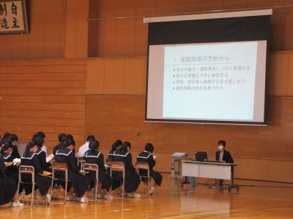 11/5(金)の5・6時間目に3年生の保護者・生徒を対象に進路説明会を行いました。平日にもかかわらず、多くの保護者の方々にお越しいただきました。ありがとうございました。