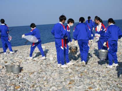 マイクロプラスチックの説明も受け、班で協力してゴミ拾いを行いました。