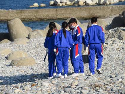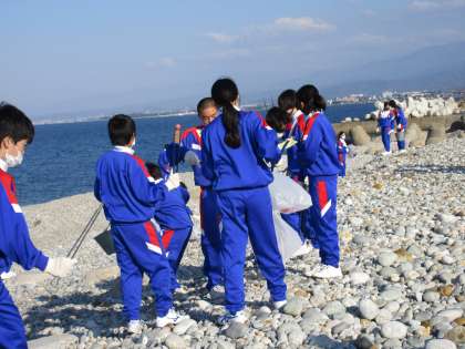 マイクロプラスチックの説明も受け、班で協力してゴミ拾いを行いました。