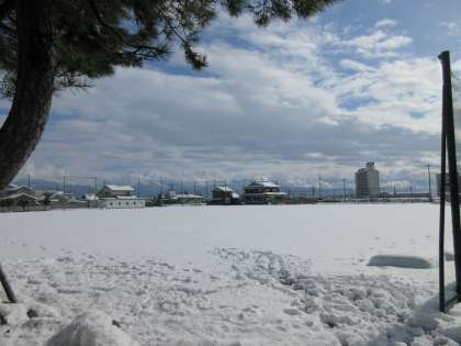 本日12月28日は仕事納めの日です。今朝方まで強烈な寒気団の影響でグラウンドは一面銀世界でしたが、昼からは冬型の気圧配置も緩み日差しも見えます。玄関は新年を迎える準備をしました。2022年よい年でありますように!
