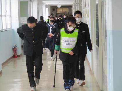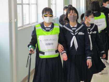 高齢者体験その1 公開日 2022/01/20 更新日 2022/01/20 第1学年 1/18〜20の家庭科の授業で「高齢者体験」を行いました。この体験をきっかけに多くの生徒が高齢者の暮らしが自分たち中学生より不便で過ごしにくいことを実感し、これからの関わりにつなげたいと考えていました。また、家庭内事故の防ぐため、高齢者にとってどのような場所が危険かを考えていました。