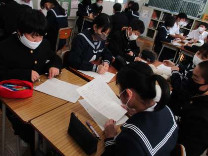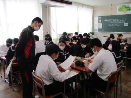 1/21(金)総合的な学習の時間に冬休み中に調べた「身近な人の職業調べ」の発表会を行いました。生徒は真剣に話を聞き、もっと知りたいことについて質問していました。発表会後の感想で「どの仕事にもやりがいがあると想った」「どの仕事にも重い責任があることが分かった」と書いていました。2月25日には「働く人に学ぶ会」を行う予定です。様々な職業の話を聴いて、自分の進路選択に生かして欲しいと想います。
