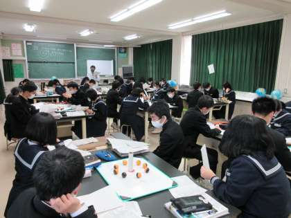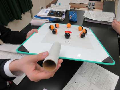 3Aは理科でした。モデルを使って金星と月の見え方の違いを学習しました。