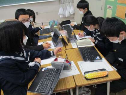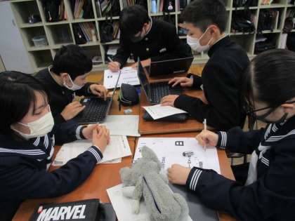 1年生の学活で、みんなで進級する意識を高めるために「みんなで『先輩』になろう活動」を始めました。今回は、班で分担し、進級までの日めくりカレンダーを作成しました。出来あがったカレンダーは廊下に掲示予定です。