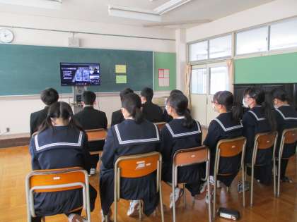 本日(3/8)の5・6時間目に、2学年では「先輩に学ぶ会」をリモートで開催しました。水橋中学校の卒業生をお招きし、高校生活や受験期のことについてお話を伺いました。生徒たちは、受験に向けて、日頃の積み重ねを大切にしていきたいという思いを強くしていました。