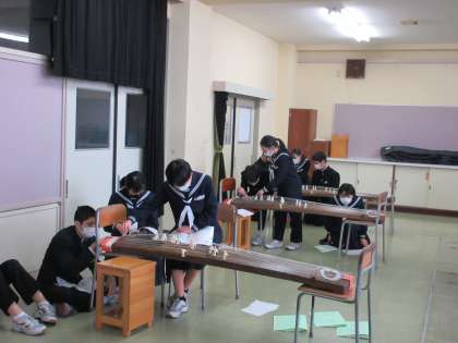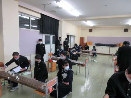 音楽 箏を演奏しよう パート2 公開日 2022/03/24 更新日 2022/03/24 第1学年 今日は、「さくらさくら」を練習しました。まだまだ慣れない手つきではありますが、最後まで演奏することができました。箏の趣のある音色が、教室に響いていました。