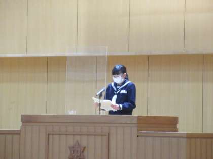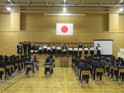 受賞伝達・意見発表 公開日 2022/03/24 更新日 2022/03/24 最近の水中の様子 本日3月24日は修了式です。式に先立ち、3学期の受賞報告と意見発表を行いました。意見発表では、今年度の自身の頑張った取組について振り返りを紹介したり、大会への参加によって学んだことの成果を報告したり充実した内容でした。新学期への期待が高まりました。
