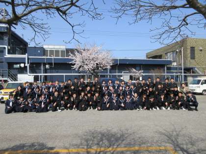 4/7(木)2学年に進級して初めての学年集会を行いました。話を聴く姿勢や入退場の様子から、進級しがんばろうとする気持ちが伝わってきました。また、校庭の満開の桜の下、笑顔も満開の学年写真を撮りました。この仲間とともに1年間でたくさん成長したいですね。