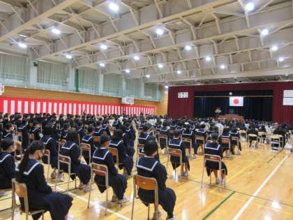 本日入学式が行われました。晴天にも恵まれさわやかな一日となりました。校長先生の式辞では、誇れる自分を見付けること、挑戦する気持ちを大切にすること、思いやりの心をもって困っている人に手をさしのべることの3つの話がありました。水橋中学校の生活で「好きです私 好きです水橋中学校」と、自信をもって言える生徒に育って欲しいと思いを伝えました。