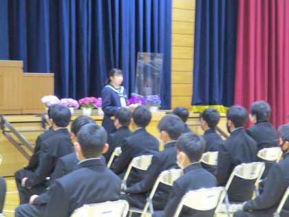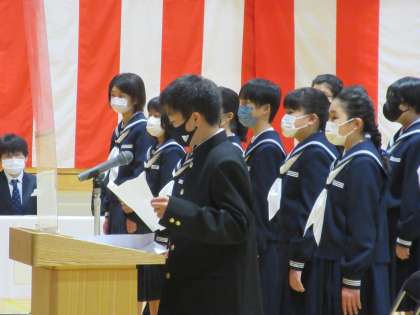 生徒代表からの「歓迎のことば」では、入学してきた新入生を温かく迎え入れ、一緒に頑張ろうという思いが伝えられました。新入生代表の「誓いのことば」からは、失敗を恐れず何事にも挑戦していこうとするひたむきさを感じました。今後の成長を期待させる立派なスピーチでした。厳粛な雰囲気の中にぴかぴかとした希望の光が差し込んでいるような素敵な入学式となりました。