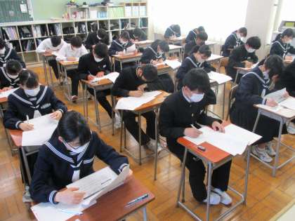 本日、全国学力調査が行われました。国語、数学、理科の3教科です。真剣に取り組んでいました。