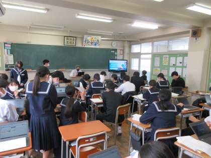 本日の授業 2A国語 2B理科 公開日 2022/04/21 更新日 2022/04/21 第2学年 本日の5時間目の授業の様子です。 2Aは国語でデジタル教科書の使い方を学びました。他の人に聞きながらクロムブックを操作していました。 2Bは理科で水の電気分解の実験のまとめをしていました。