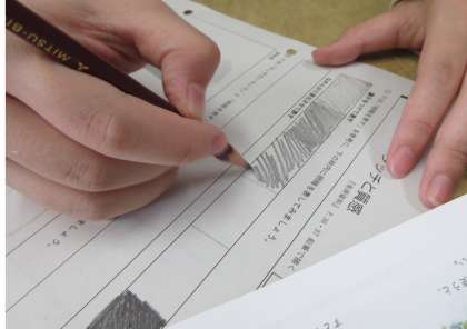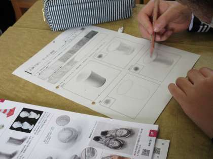 お互いの作品を見合い、濃さや線の向き、ぼかし方等、自分と違う仲間の表現を見付けました。