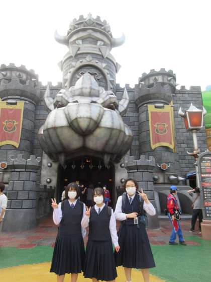 修学旅行の学年スローガン「過去と未来」のとおり、午前は平和学習をして、午後は未来を感じるUSJに行きました。最高の旅の思い出になりました。