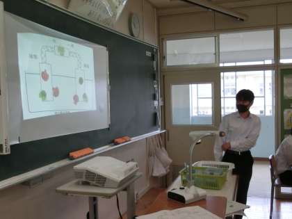 塩化銅水溶液の電気分解するときのようすをグループで学び合いました。