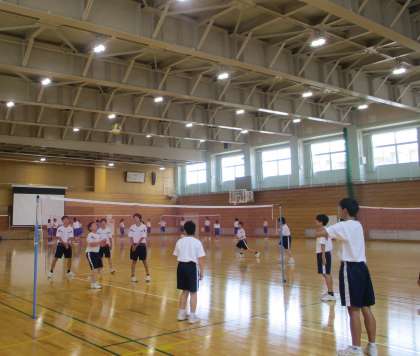 授業のようす 1年保健体育(バレーボール) 公開日 2022/06/10 更新日 2022/06/10 第1学年 1年生の保健体育では、バレーボールに取り組んでいます。うまくボールがつながるようにチームでの練習に励んでいます。