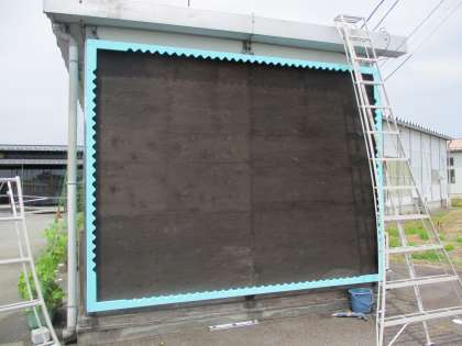 本校美術部では、昨年度から依頼を受け壁画制作を続けています。今現在は紫外線による変色を防ぐために壁画表面に保護材を塗る作業が終わり、完成に近づいています。壁画を設置する壁に額縁状の木枠を設計し、受け入れ態勢も整ってきました。完成・お披露目は7月を予定しています。水橋から地元の美術館をアピールできるように制作を頑張っています!