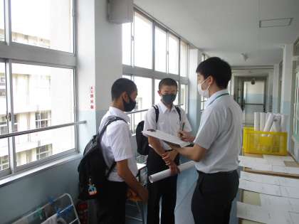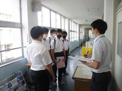 2年生は、7月に行われる「社会に学ぶ『14歳の挑戦』」に向けて、それぞれの事業所に事前訪問に行きました。緊張した表情で、何を聞いてくるのか、何が必要かを休み時間をつかって再確認していました。
