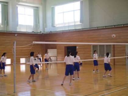授業の様子(2−A・B保健体育 バレーボール) 公開日 2022/06/30 更新日 2022/06/30 最近の水中の様子 今日は、1学期に学習したバレーボールの単元のまとめとして、A組とB組に分かれて対抗戦を行いました。学習した成果があってボールがつながり、白熱したゲームを楽しむことができました。また、終わった後の振り返りでは互いのクラスや2年生の絆を深めることができたという意見が出ました。