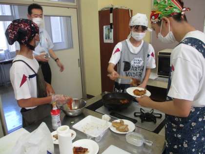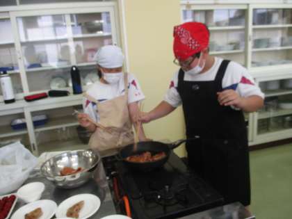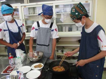 2学年調理実習 公開日 2022/06/30 更新日 2022/06/30 第2学年 6/30(木)2学年は、家庭科の調理実習で「ぶた肉のショウガ焼きとわかめときゅうりの酢の物」に挑戦しました。慣れない手つきできゅうりを薄切りにしたり、肉をつけ汁につけたりと各班協力して実習していました。
