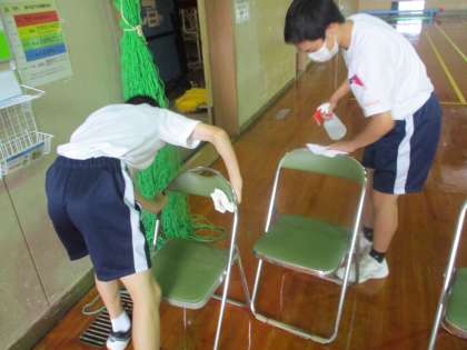 14歳の挑戦 富山市勤労身体障害体育センター 公開日 2022/07/04 更新日 2022/07/04 第2学年 富山市勤労身体障害体育センターでの活動の様子です。椅子の裏まで雑巾できれいに汚れを拭き取っていました。