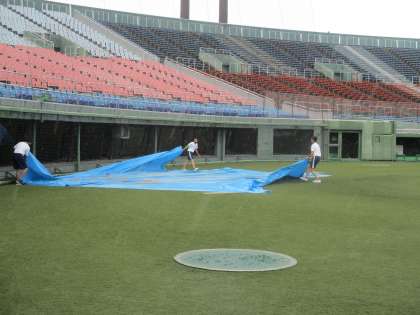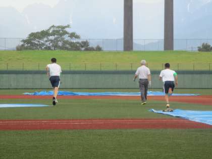 14歳の挑戦 富山市民球場 公開日 2022/07/04 更新日 2022/07/04 第2学年 富山市民球場での活動の様子です。午前は利用者の受付を行い、午後はグランド整備を行いました。雨がぱらつく中、素早くブルーシートを土にかぶせていました。