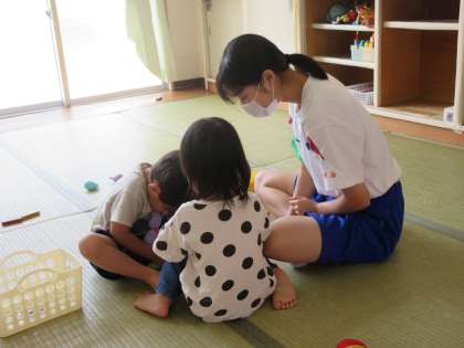 「14歳の挑戦」3日目(水橋西部保育所) 公開日 2022/07/06 更新日 2022/07/06 第2学年 3日目の活動になり、少し慣れた表情でそれぞれの部屋で活動を行っていました。日によって担当クラスが変わるため、年齢に応じた保育の仕方を考えているようでした。
