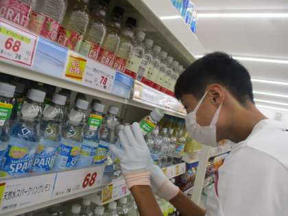 飲み物やお菓子の品出しをして空のダンボールについているガムテープも分別していました。また、元々並んでいる商品を賞味期限が近い物を手前に並び変えていました。