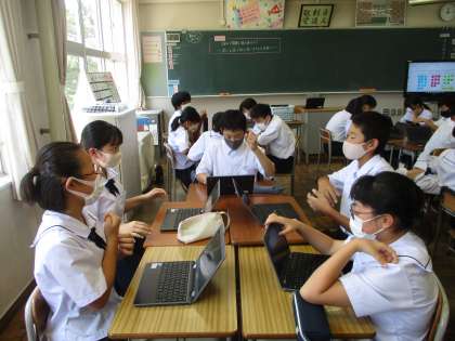 ジャムボードを使って、「良かったところ」、「改善する必要があるところ」、「2学期さらに頑張りたいこと・提案」の3点について、意見を出し合いました。