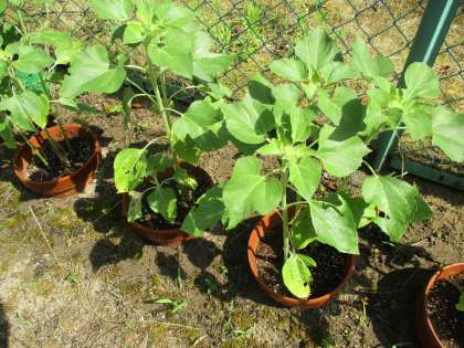 学校裏にひまわりが植えられてます。もうすぐひまわりの花が咲きそうです。