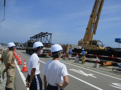 「14歳の挑戦」5日目(小林建設) 公開日 2022/07/08 更新日 2022/07/08 第2学年 今日は暑い中、実際に現場に行って見学を行いました。どんなに暑くても作業を止められるわけではありません。今回の体験で仕事の厳しさと責任感の大事さを学んだと思います。