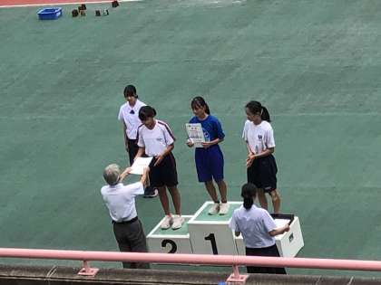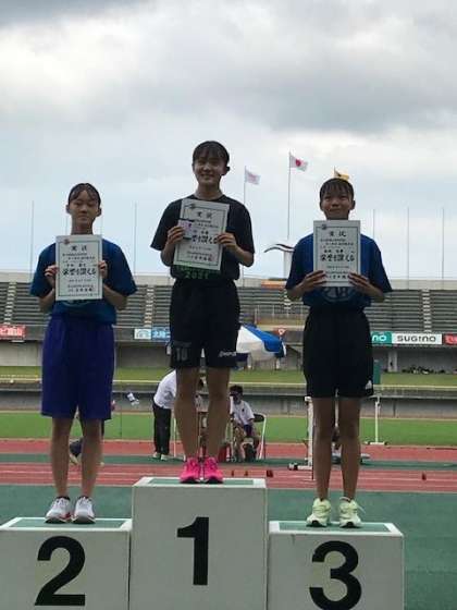 〇陸上競技部 表彰 <写真上>女子総合 <写真中>1年女子走幅跳 <写真下>2年女子100m