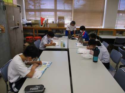 <写真上 ソフトテニス部男子> <写真中 剣道部> <写真下 夏勉のようす>
