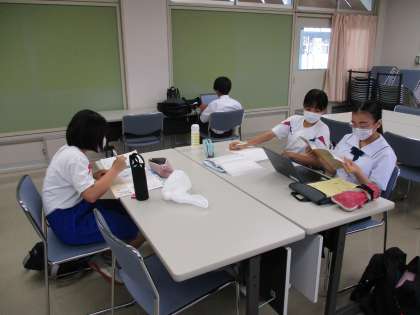 夏休みの学校のようす 公開日 2022/08/03 更新日 2022/08/03 最近の水中の様子 <写真上 剣道部> 暑さの中にあっても面付けの瞬間は凜とした空気が漂います。 <写真中 吹奏楽部> 1・2年生で今後の運営について話し合っていました。真剣です! <写真下 夏勉> 夏休み前半でかなりの手応えを感じているようですね!