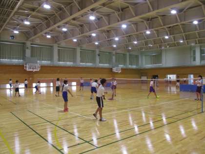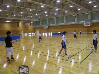 <写真上>ソフトテニス部女子 <写真中>バドミントン部 <写真下>剣道部