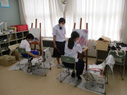 <写真上>美術部 <写真中>吹奏楽部 <写真下>夏勉