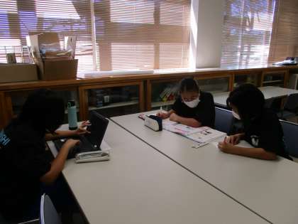 部活の後に残って頑張っています。ワークの答え合わせと見直し、クロムブックを使った課題に取り組んでいます。分からないところは教えてもらいながら理解を深めています。