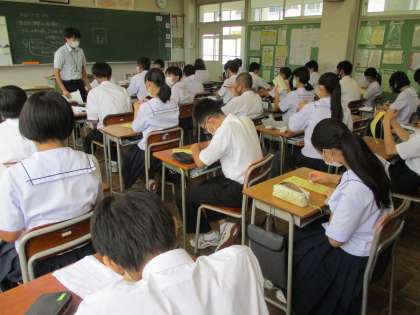 本日の学活のようす 公開日 2022/08/29 更新日 2022/08/29 最近の水中の様子 <写真上> 1学年は学年集会の後、体育大会の「台風の目」の練習をしました。 <写真中・下> 2年生は学活で夏休みの生活を振り返りました。